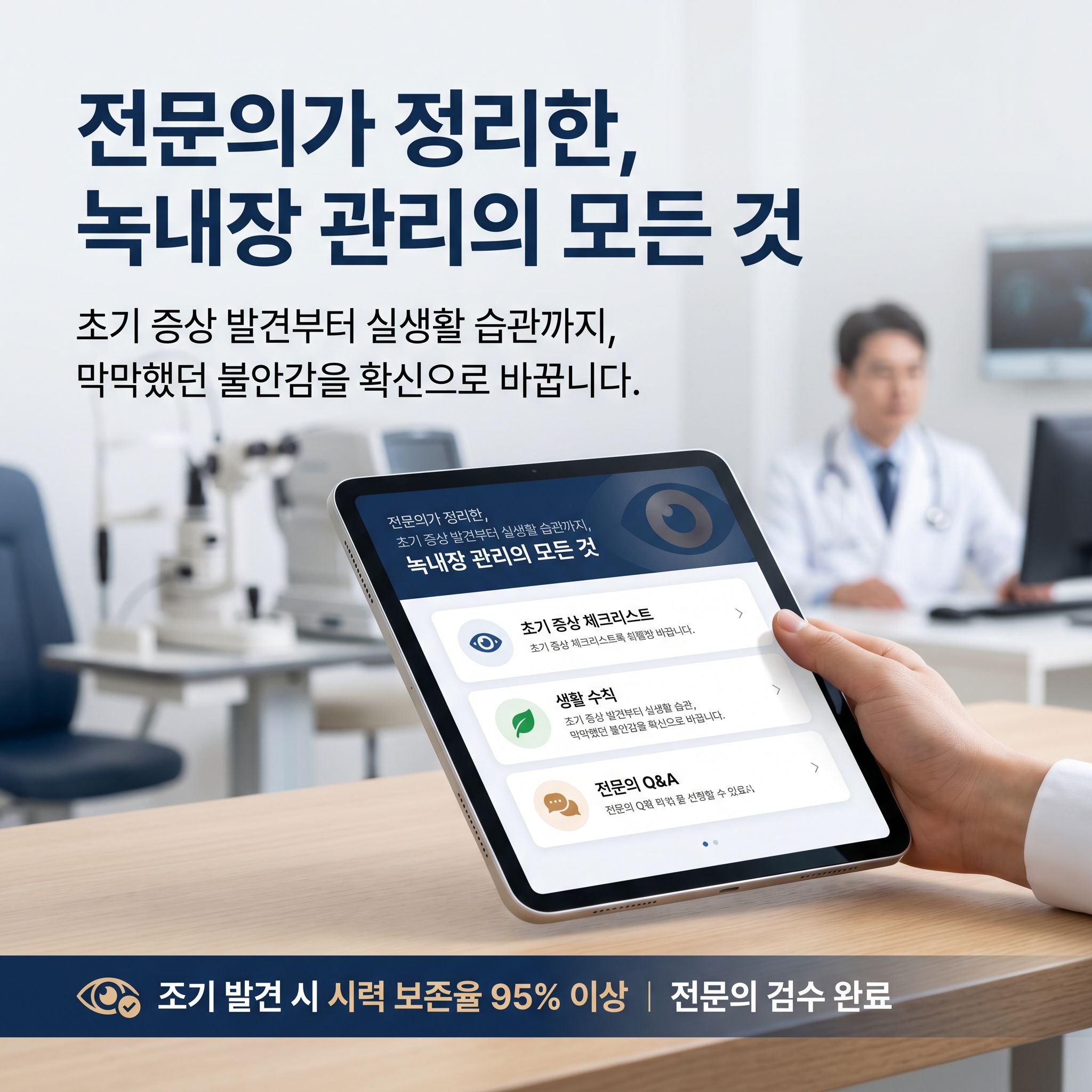 이 사례가 보여주듯, 녹내장은 자각 증상 없이 오랜 시간 진행됩니다. 시신경이 한 번 손상되면 회복이 불가능하기 때문에 조기 발견이 모든 것을 결정합니다.