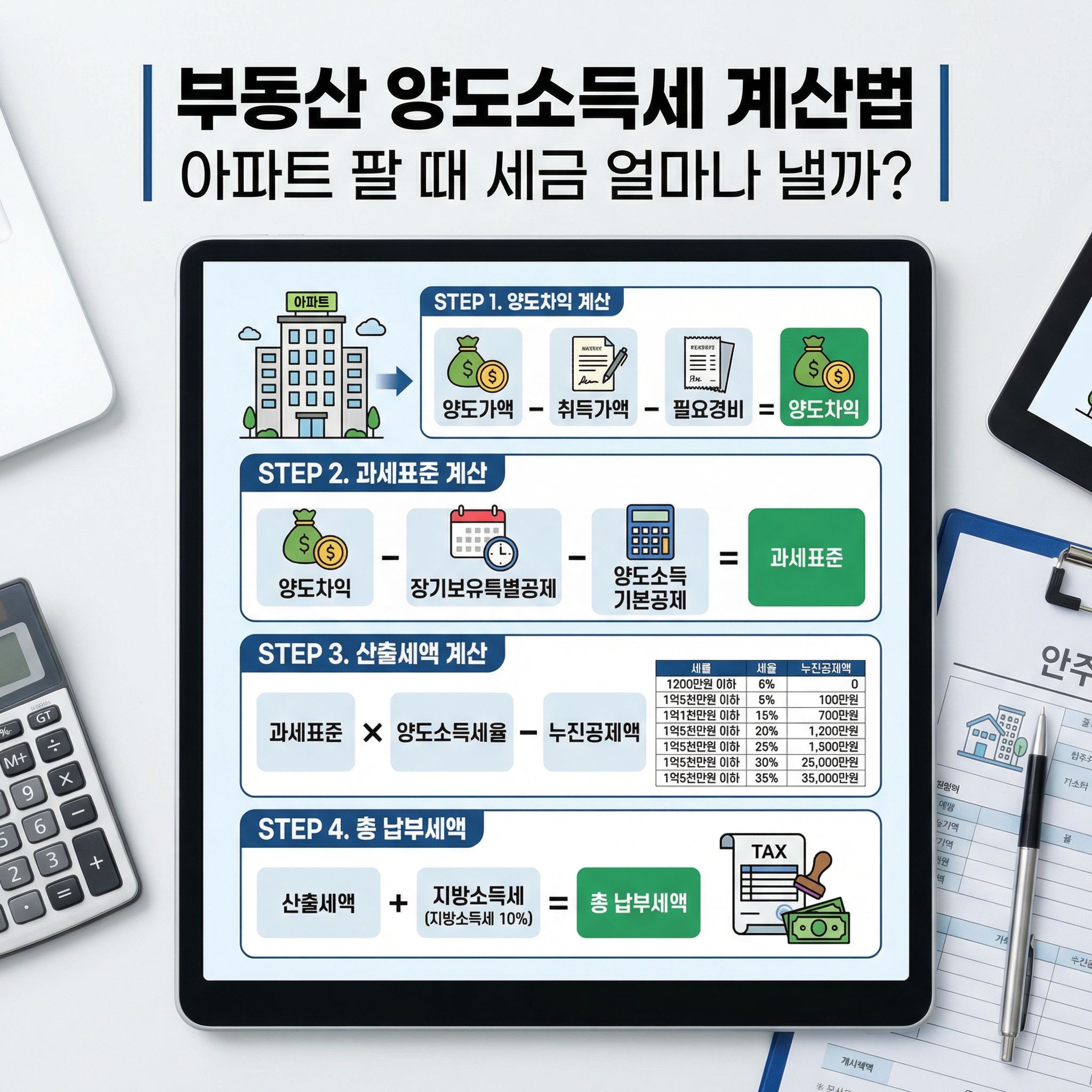 아파트를 팔기로 결정했는데, 세금이 얼마나 나올지 감이 안 잡히셨나요? 저도 처음 집을 팔 때 국세청 홈페이지를 몇 번이나 들락날락하다 결국 세무사를 찾아갔습니다. 그때 배운 양도소득세 계산 방법, 절세 핵심 포인트, 자주 묻는 질문까지 한 번에 정리했습니다.