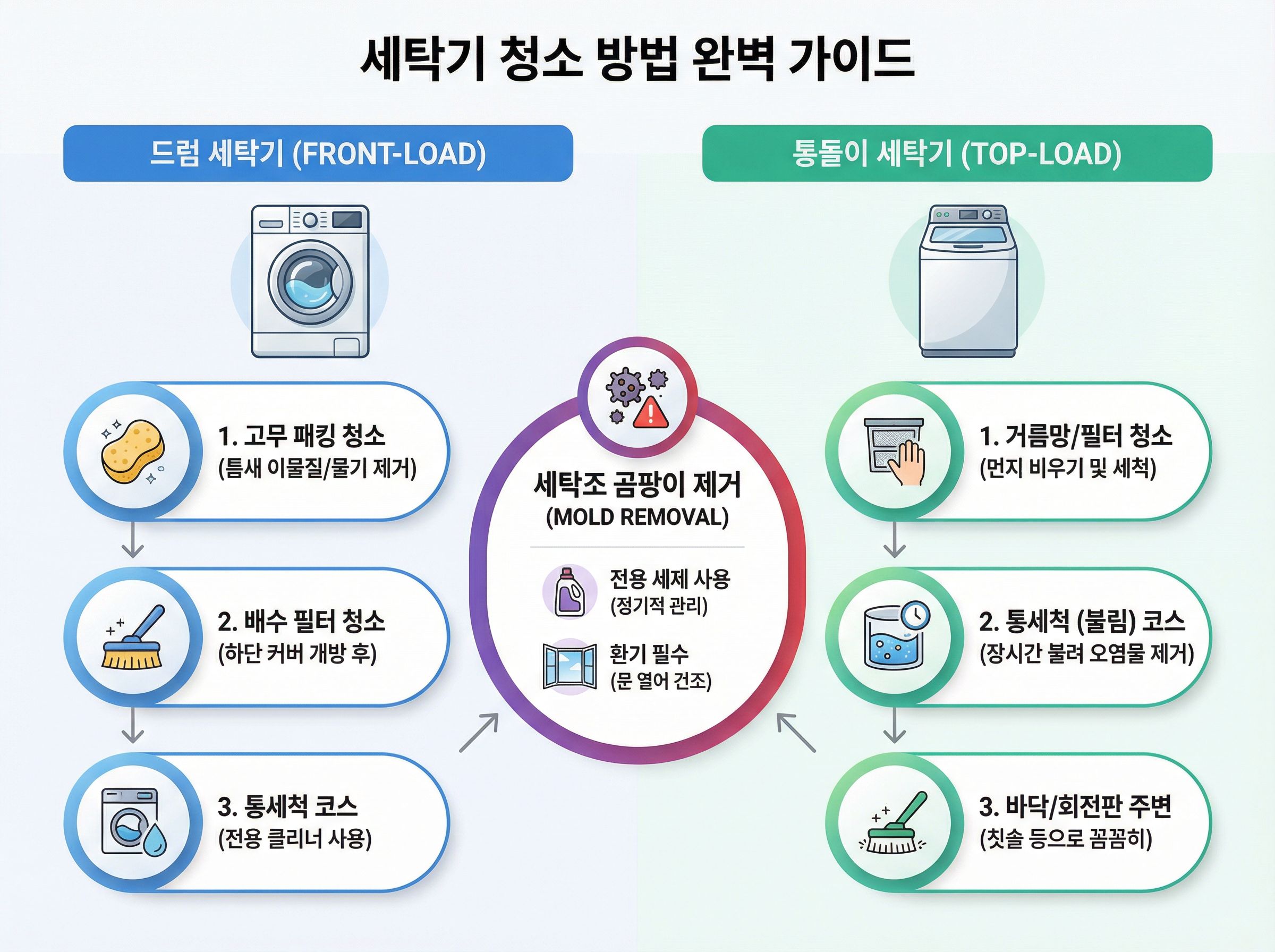 드럼세탁기 청소 방법 — 단계별 완벽 가이드