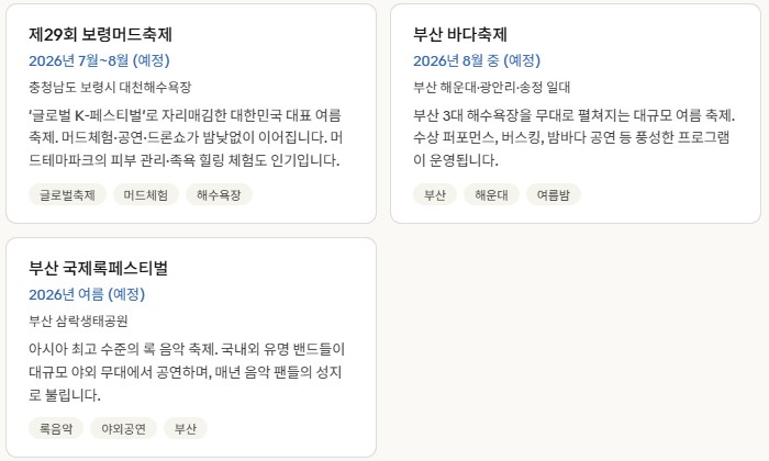 여름 축제 일정 — 6월·7월·8월