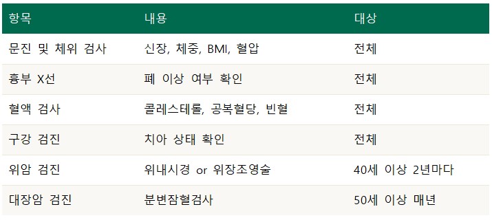 2️⃣ 기본 검진 항목 한눈에 정리